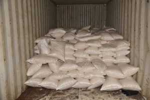 NCA and Border Force officers searched the container and found 2,335 packages of herbal cannabis hidden inside white hessian sacks of garri powder.